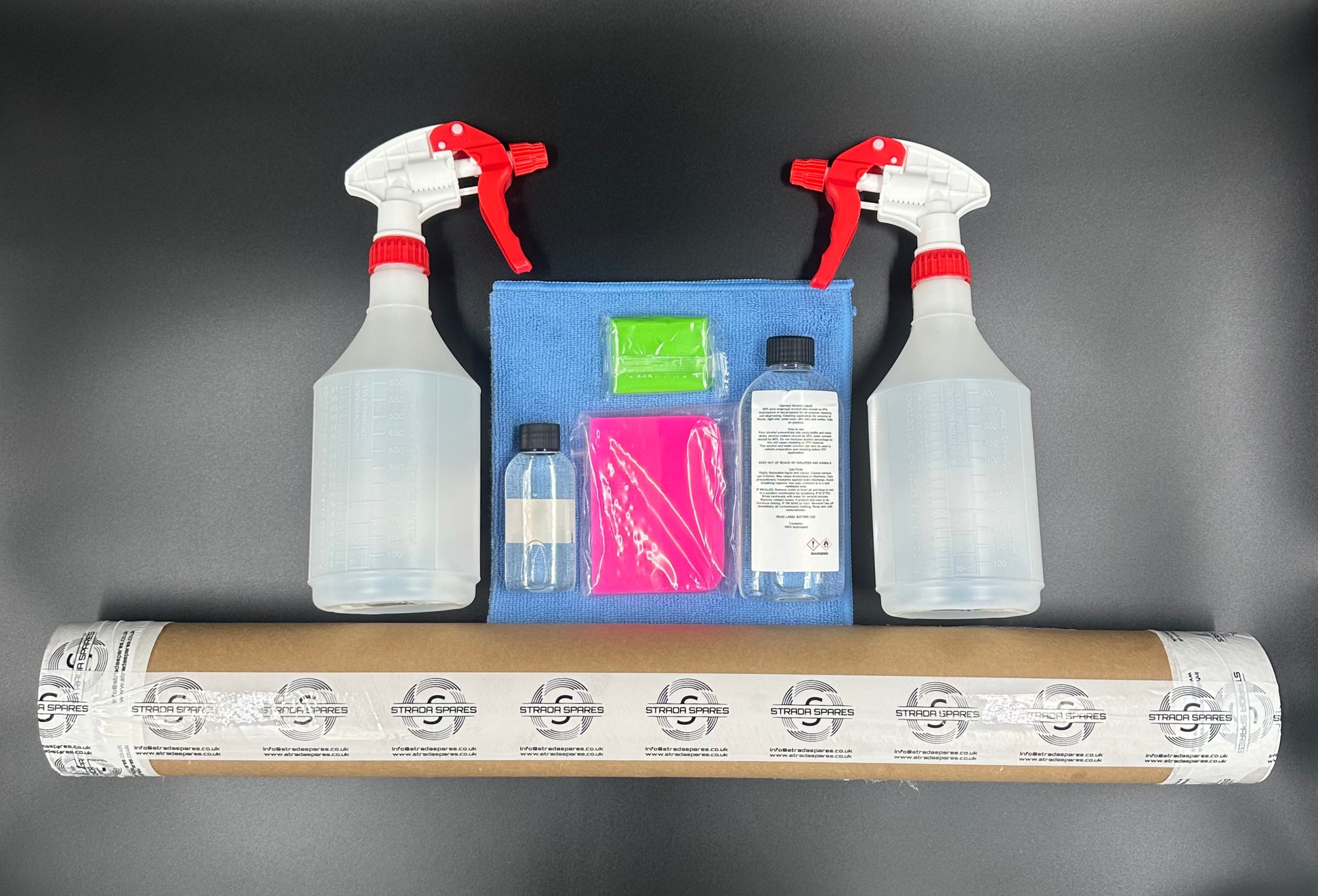 - X1 Instillation Kit which includes a Microfibre towel, Clay Bar, Squeegee, X1 Tack solution with spray bottle and X1 Slip solution with spray bottle