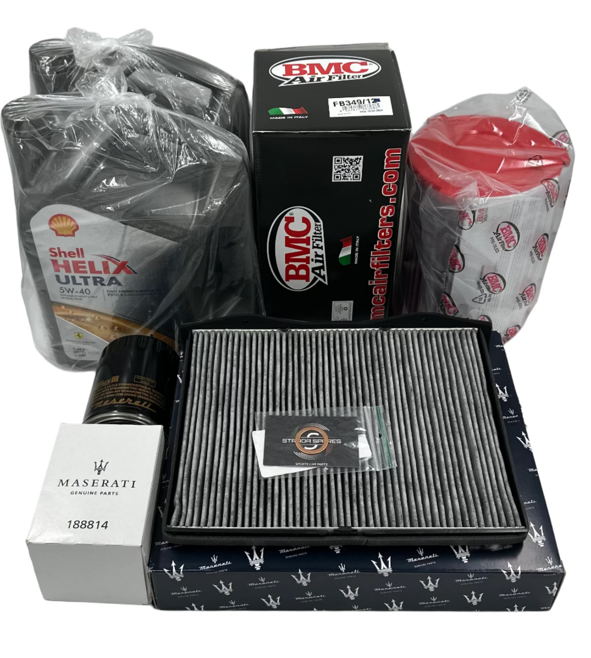 This Maserati service kit includes all essential components for a full engine maintenance service.