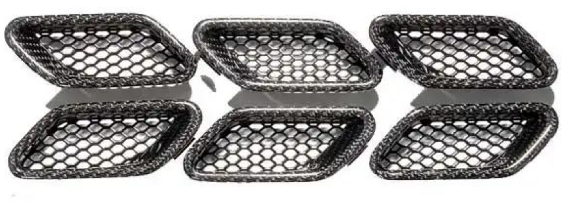 Enhance the side profile of your Maserati with this 6-piece carbon fiber side grille set, designed for a sleek, aggressive upgrade that complements the car’s elegant lines. Crafted for both form and function, these premium grilles deliver a race-inspired aesthetic with a high-gloss carbon fiber finish.