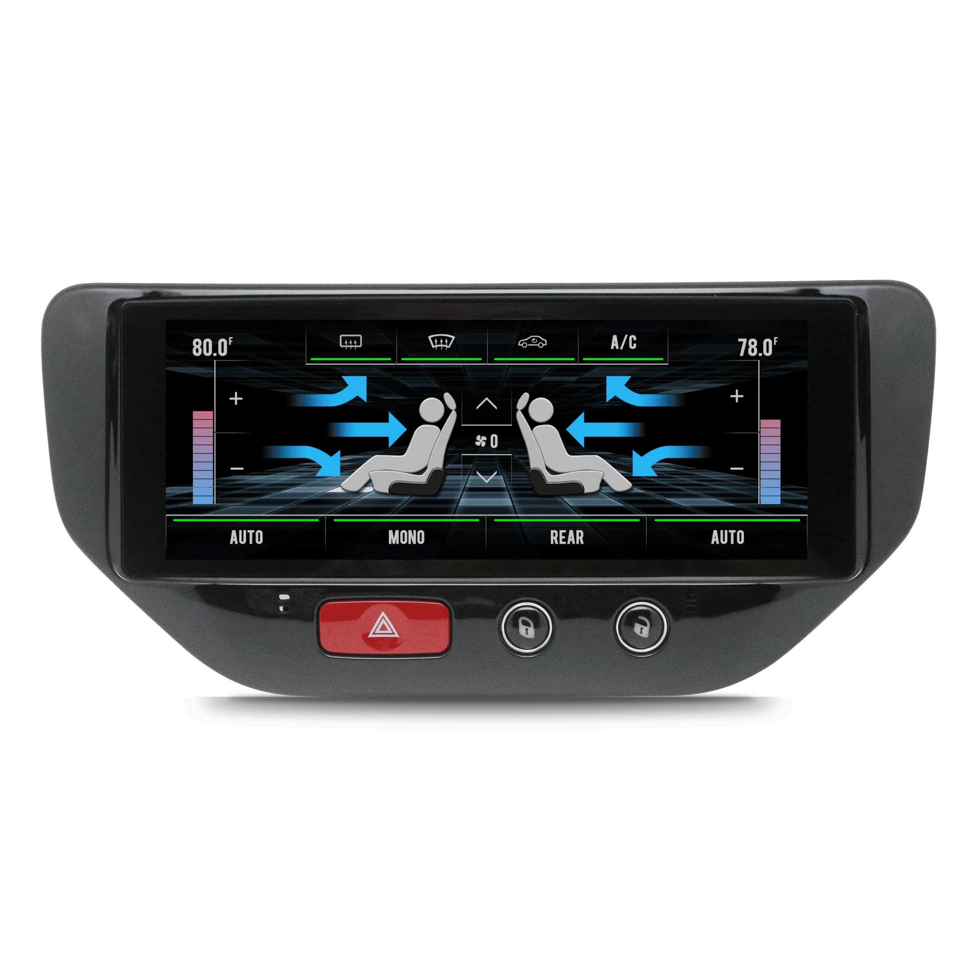 - Instantly view and manage cabin temperature, A/C mode, fan speed, and more